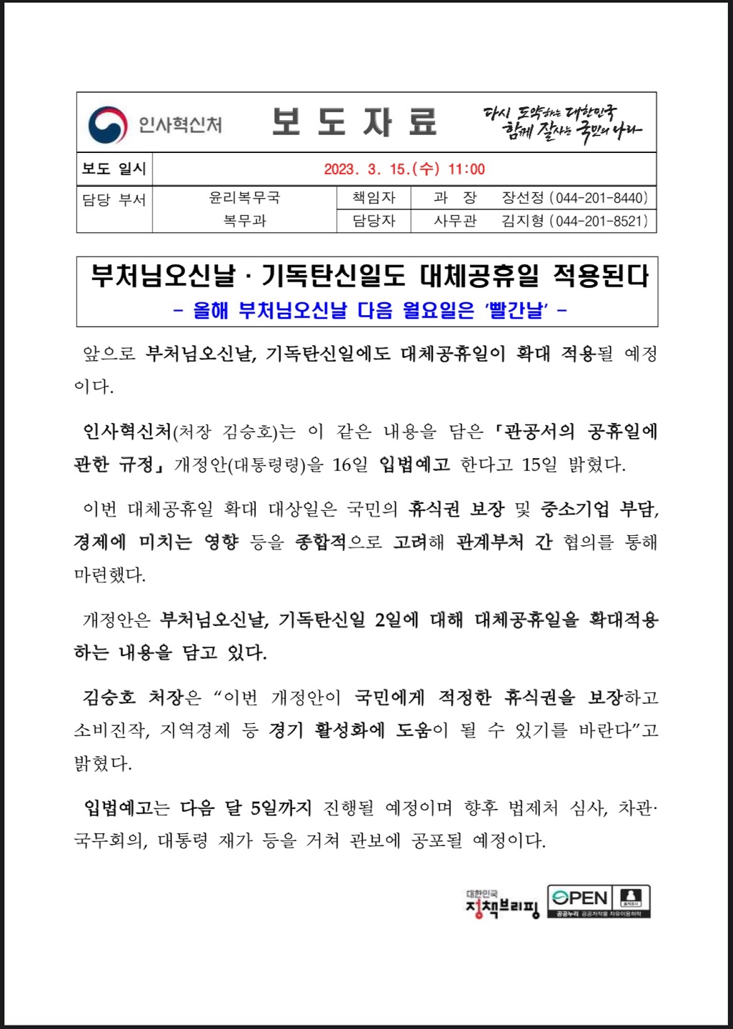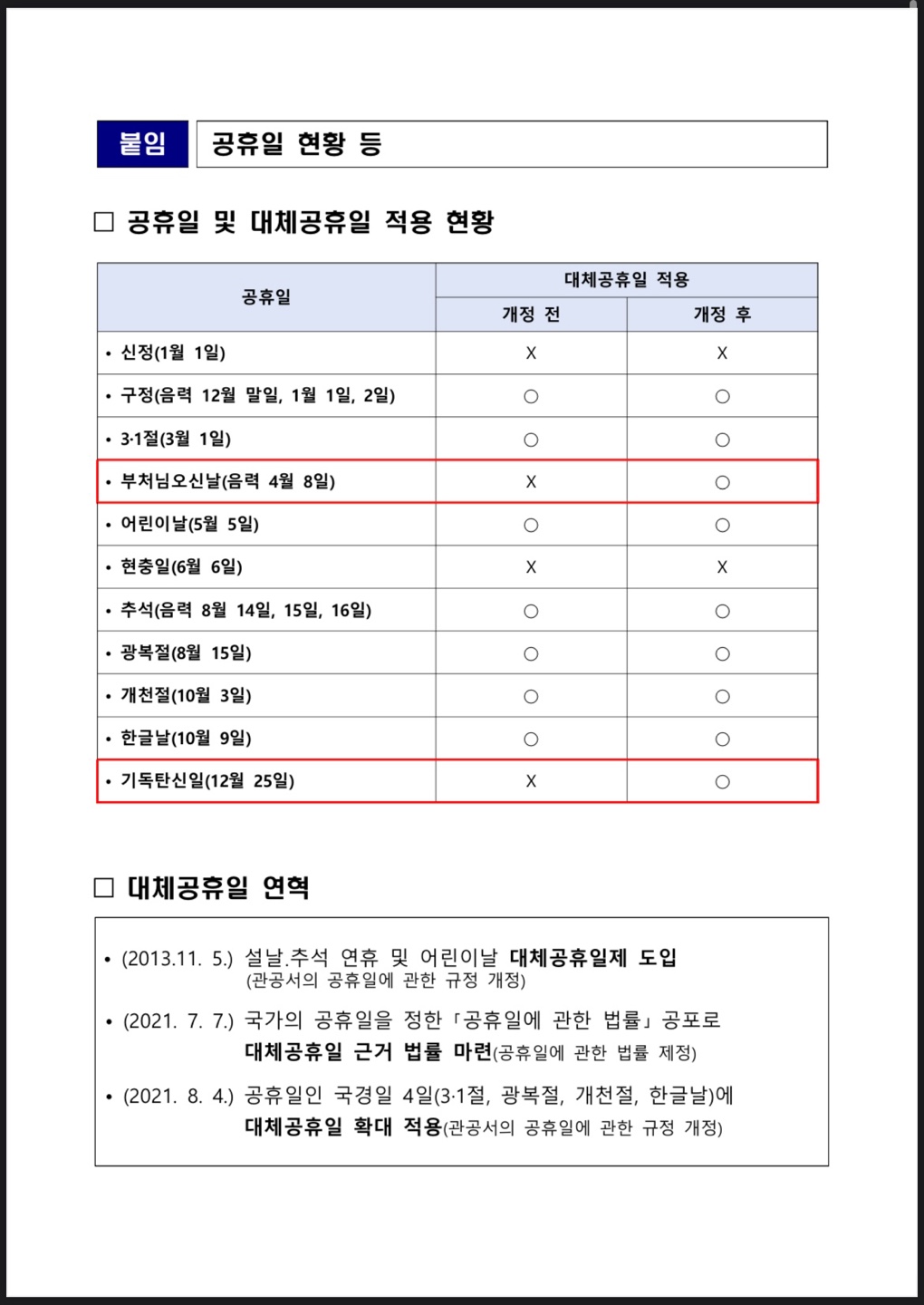 부처님 오신날과 크리스마스가 대체 공휴일로