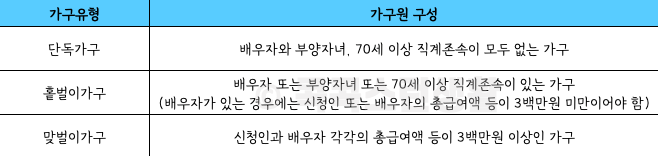 ③ 맞벌이 가구 : 신청인과 배우자 급여액이 각각 300만원 이상인 가구